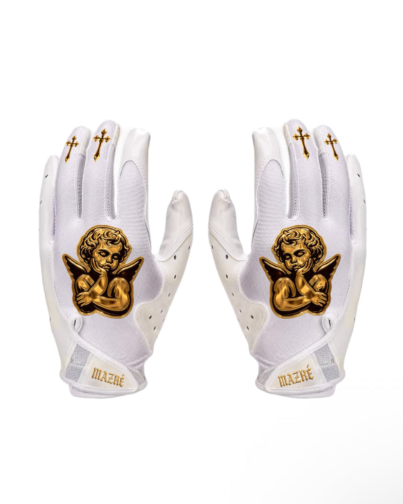 Mazhè “Baby Angel” Gloves were created for players who stay grounded and play with purpose. Clean white base, gold detailing, black logo on palms and a message that hits home every time you line up. Smooth fit, real grip, and that quiet confidence that speaks for itself.